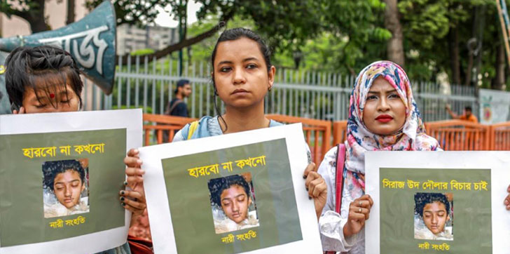 INDIA.- Un tribunal de Bangladesh condenó a muerte a 16 personas por el asesinato de una adolescente que fue incendiada después de que denunciara acoso sexual.