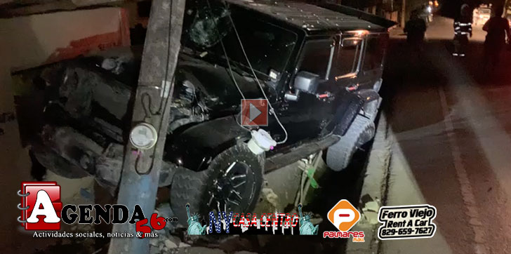 SAN FRANCISCO DE MACORÍS.– Un joven que conducía un jeep por la calle Castillo parte alta, próximo a la comunidad Las Guázumas se estrelló contra un poste del tendido eléctrico durante la noche de este lunes.