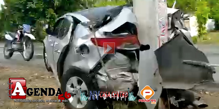 DUARTE.– Un vehículo quedó destruido al impactar con un poste del tendido eléctrico, la mañana del domingo, en el tramo carretero Nagua-San Francisco, específicamente en el Cruce San Rafael del distrito municipal Las Taranas, en Villa Riva.