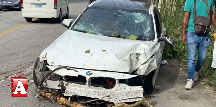 El vehículo involucrado en el accidente es un carro marca BMW de color blanco, con placa A757557.