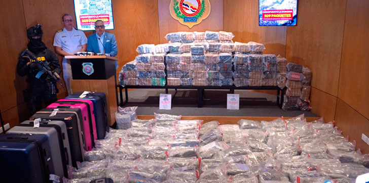 AGENDA56, SANTO DOMINGO.- Agentes de la Dirección Nacional de Control de Drogas (DNCD) y miembros del Ministerio Público, apoyados por Aduanas (DGA), el Cuerpo Especializado de Seguridad Aeroportuaria (CESAC), así como por la Dirección de Inteligencia de la Policía Nacional (DINTEL), confiscaron 11 maletas que en su interior tenía un total de 509 paquetes de presunta marihuana, durante una operación de seguimiento e interdicción, desarrollada en el aeropuerto Internacional de La Romana.