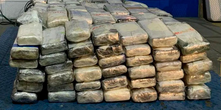 La comunicación detalla que después de un examen más intrusivo, los oficiales encontraron 231 paquetes de contrabando, que dieron positivo en el campo a las propiedades de la cocaína.
