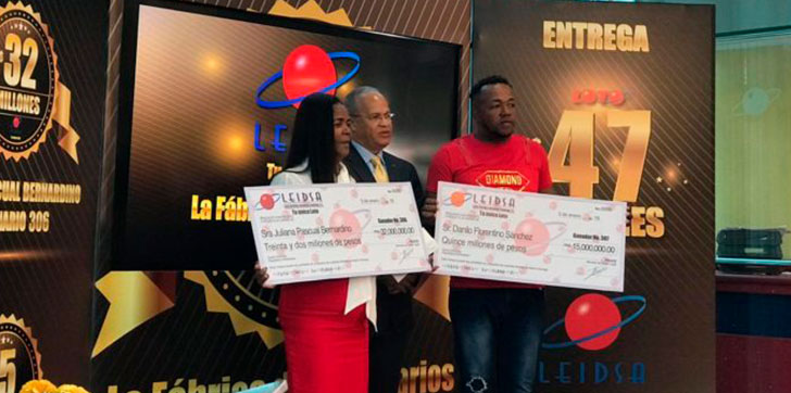 Santo Domingo, RD.- La Lotería Electrónica Internacional Dominicana S.A (LEIDSA) entregó este jueves 47 millones de pesos a dos nuevos ganadores de los sorteos realizados el sábado 15 y miércoles 19 de diciembre del 2018.