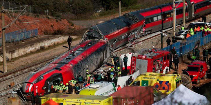 El accidente se produjo la tarde del domingo, cuando un tren de alta velocidad de la compañía Iryo, de origen italiano, que cubría la ruta Málaga–Madrid, descarriló parcialmente, provocando que varios de sus vagones invadieran la vía contigua. En ese mismo tramo circulaba otro convoy de la empresa estatal Renfe, con destino a Huelva, el cual también terminó descarrilando tras el impacto.