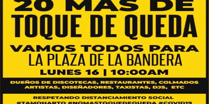 AGENDA56, SANTO DOMINGO.- Comerciantes, músicos y taxistas, a través de un afiche que circula en las redes sociales, convocaron a la ciudadanía a darse cita en la Plaza de la Bandera, en rechazo al toque de queda, dispuesto por el Gobierno para frenar la COVID-19.