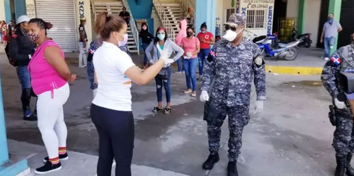 Coronel de la Policía impone distanciamiento entre personas en Nagua