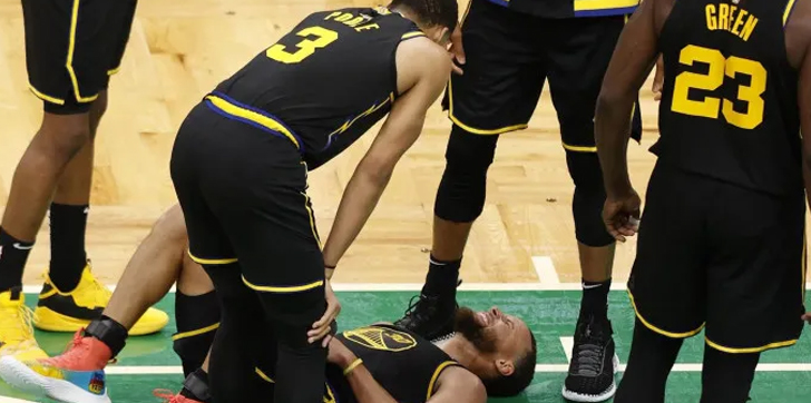 Curry se lesionó en un choque con el dominicano Al Horford peleando por un balón dividido a falta de cuatro minutos para el final, cuando su equipo iba perdiendo 110-98.