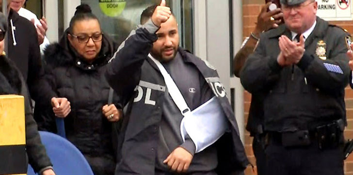 Gautreaux, que no es casado, salió del hospital con el brazo sano en alto en señal de victoria coreado por los prolongados aplausos y vítores de docenas de policías, acompañado por su padre y otros familiares.