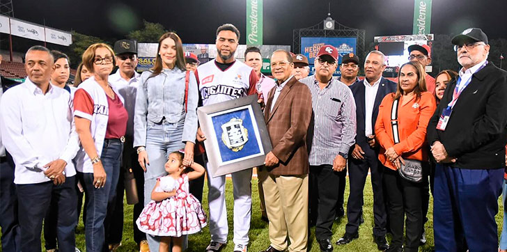 Previo al inicio del partido el ayuntamiento municipal representado por el alcalde Siquio Ng de la Rosa y los honorables regidores entregaron una merecida placa de reconocimiento al igual que los Gigantes del Cibao entregaron un enorme cuadro alusivo a la gran carrera del prestigioso jugador de grandes ligas.