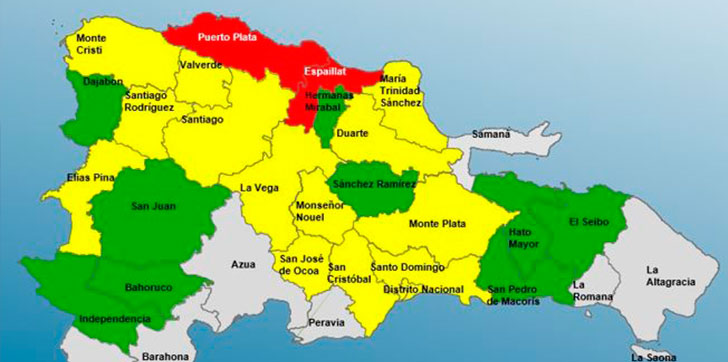 Declaran alerta roja en Puerto Plata y Espaillat; varias provincias en amarilla y verde