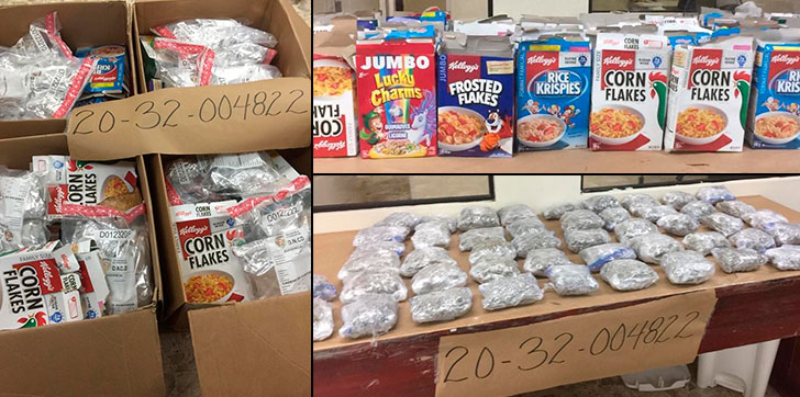 Decomisan más de 29 libras de marihuanas en cajas de Corn Flakes procedentes de Canadá