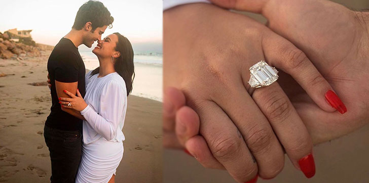 Las imágenes muestran a Lovato y Ehrich abrazados en una playa. Ella lleva un gran anillo de compromiso en su dedo.