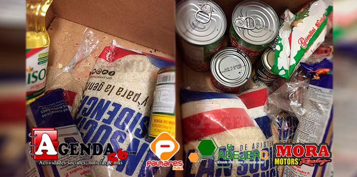 Los productos que incluye cada una de las cajas, tales como arroz, habichuelas, ponche, harina, pasta, azúcar, vino, ron, sardinas, sazones, café y cazabe, entre otros, se observan todos repletos del excremento del animal.
