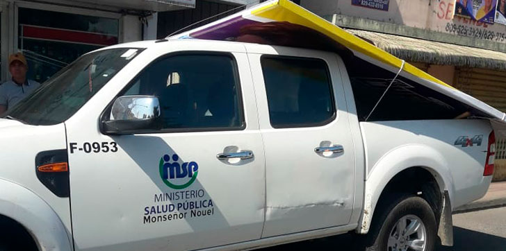 “Así andan las cosas aquí en Bonao, los vehículos que son del Estado, como por ejemplo ese del Ministerio de Salud Pública, cargando letreros”, indicó el ciudadano.
