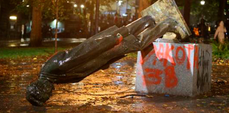 Derriban estatuas en protestas del Día de Colón en Portland