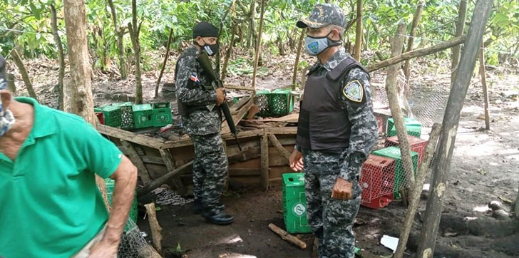 En tanto que, en el paraje La Finca de Aleyes, en el municipio de Villa Vásquez, provincia de Montecristi, desaprensivos jugaban gallos en una gallera clandestina, también desmantelada por los agentes policiales que comandaba el coronel Franklin Segura Tapia, junto al supervisor zonal, mayor Rafael Antonio Estrella Fernández y un representante del Ministerio Público.