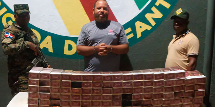 El detenido fue identificado como Guillermo Rosario Rosario, quien llevaba 100 paquetes de cigarrillos de procedencia extranjera —marca Capital—, lo que equivale a un total de 20,000 unidades.