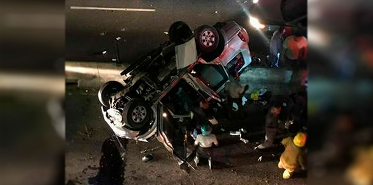 El accidente vehicular se produjo la noche del jueves cuando la jeepeta, cuyo conductor supuestamente se cruzó en rojo, fue impactado por un minibús del transporte público, provocando que este cayera al túnel. Resultaron heridas cuatro personas, dos de ellas de gravedad.