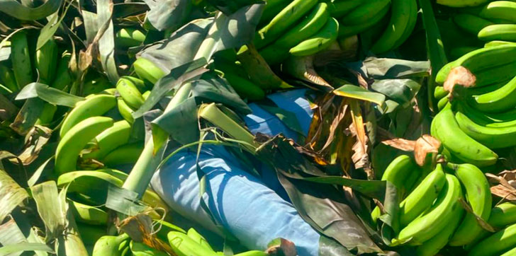 Los indocumentados eran transportados de manera oculta, uno en la cabina, acostado en los pies del conductor y otro en la cama del camión, escondido bajo la carga del producto agrícola.