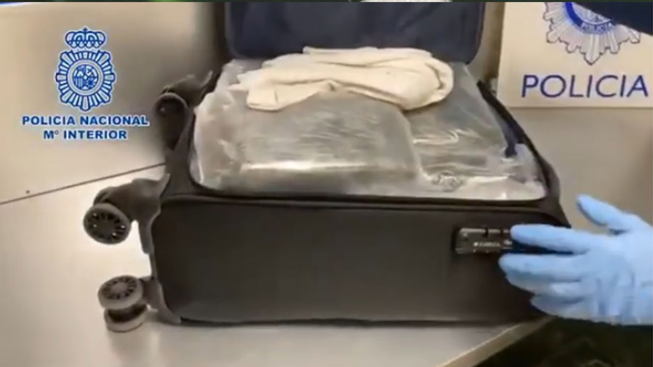Según un video publicado en la cuenta de Twitter de la Policía Nacional española, se observa como un hombre es llevado a un cuarto de inspección donde le revisan su maleta y al abrirla lo único que contenía eran varios paquetes envueltos en plástico.