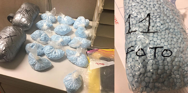 Los policías incautaron 20.000 pastillas de oxicodona falsificadas cargadas de fentanilo letal.