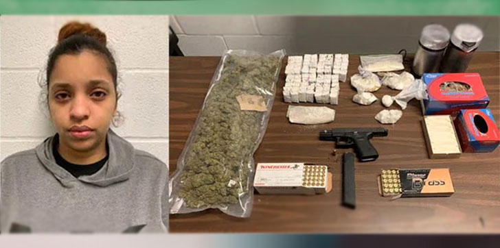 NUEVA YORK.- Policías anti narcóticos de Paterson en Nueva Jersey, detuvieron a la dominicana Delia Arias Jiménez, de 23 años de edad, durante una revisión después que ella invitara a los oficiales a entrar a su casa de la calle Ellisson, donde hallaron un laboratorio de drogas, en el que ella procesaba heroína, cocaína y marihuana, además de una pistola calibre .40 que había sido robada.