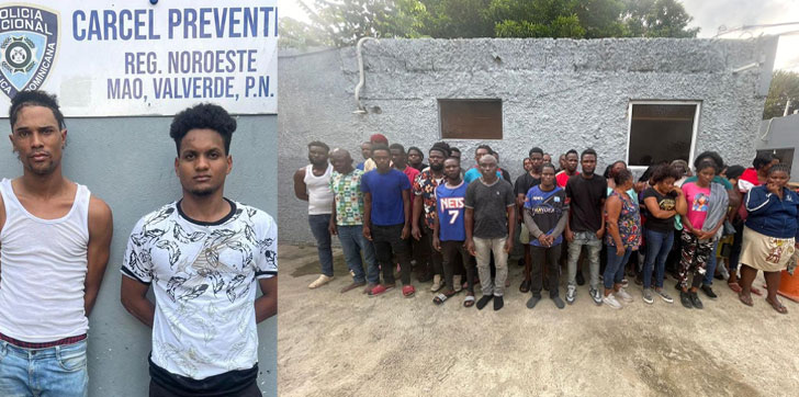 VALVERDE. -Dos jóvenes fueron arrestados este sábado por agentes de la Dirección Regional Noroeste de la Policía Nacional con sede en Mao, provincia Valverde momento en que transportaban 42 ciudadanos de nacionalidad haitiana en condiciones migratoria irregular.