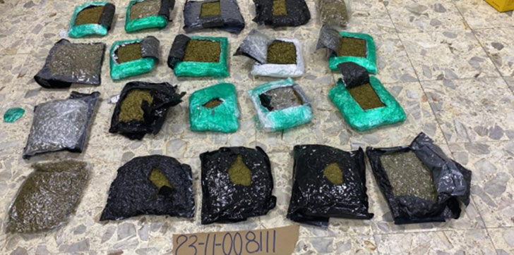 En presencia de un fiscal se procedió abrir un bulto, donde incautaron varias fundas verdes y negras conteniendo en su interior los 20 paquetes del vegetal, con un peso preliminar de 25 libras.