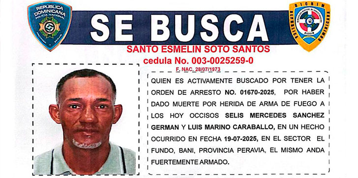 Soto Santos era activamente buscado mediante dos órdenes de arresto (números 003-0025259-0 y 01670-2025) emitidas por el Tribunal de Atención Permanente de la provincia Peravia.