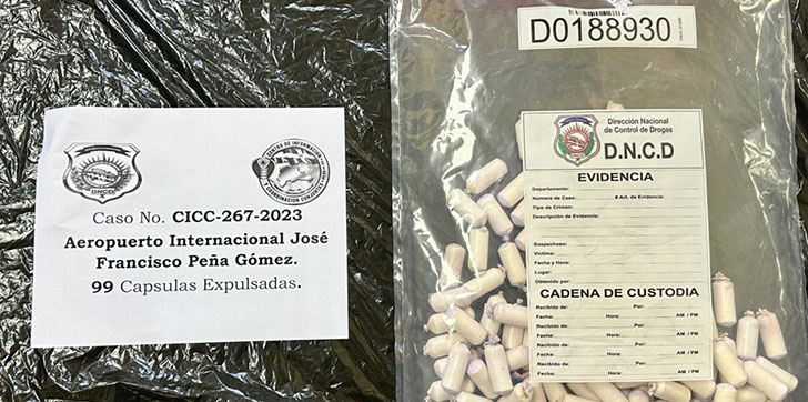 Las autoridades informaron que el dominicano expulsó 99 bolsitas presumiblemente cocaína, con un peso aproximado a un kilogramo de la sustancia.