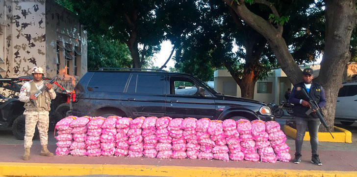 AGENDA56, DAJABÓN.- El Cuerpo Especializado de Seguridad Fronteriza Terrestre (CESFRONT), conjuntamente con miembros del (C-2), detuvo este jueves una jeepeta con 80 sacos de ajo con un peso aproximado de 22 libras cada uno, en las cercanías de la Costa de Buen Hombre, provincia Montecristi.