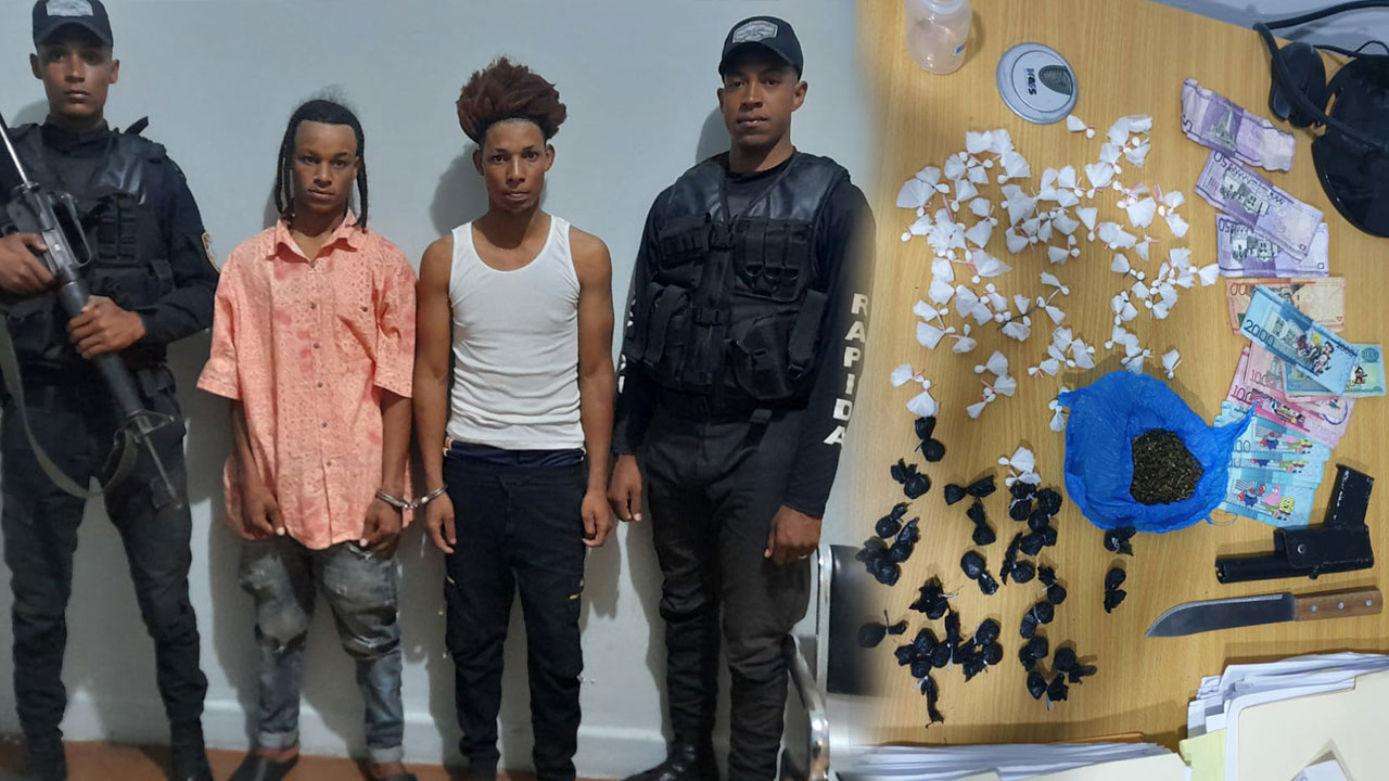 Según el informe preliminar de las autoridades, los prevenidos se desplazaban a bordo de una motocicleta marca Suzuki, modelo AX100, de color azul, con chasis número LC6PAGA18N0016820, resultando detenidos por una patrulla policial al mostrar un alto perfil sospechoso.