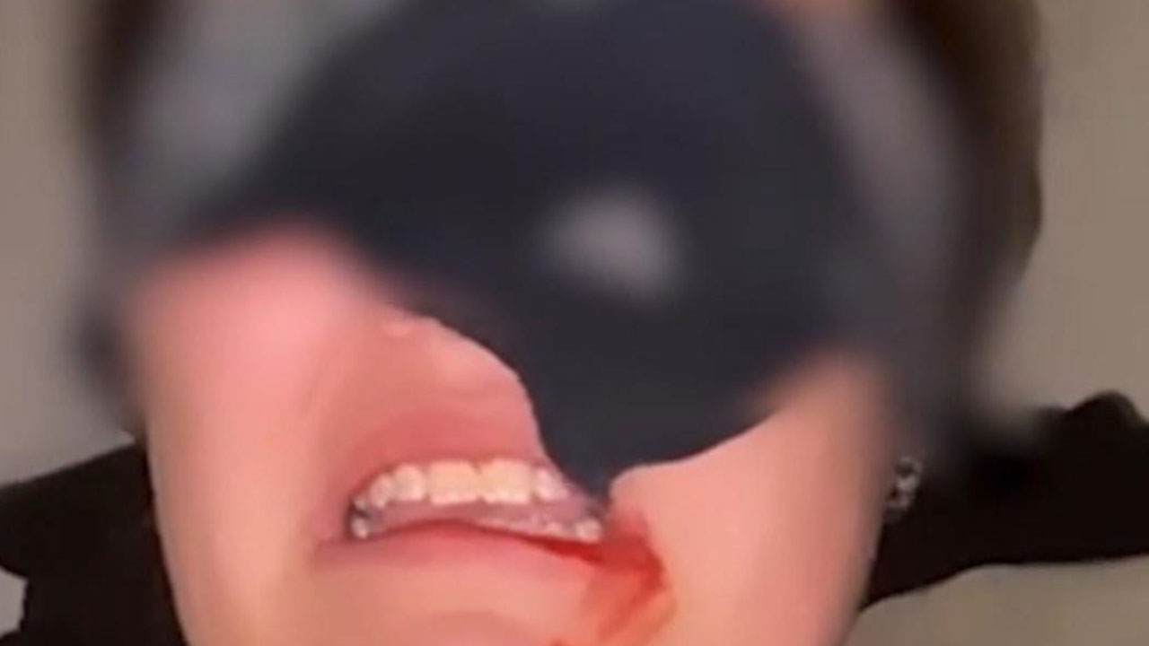 La hija grabó este vídeo en el que aparecía amordazada, con un cuchillo en el cuello y manchas de sangre falsas en la cara.