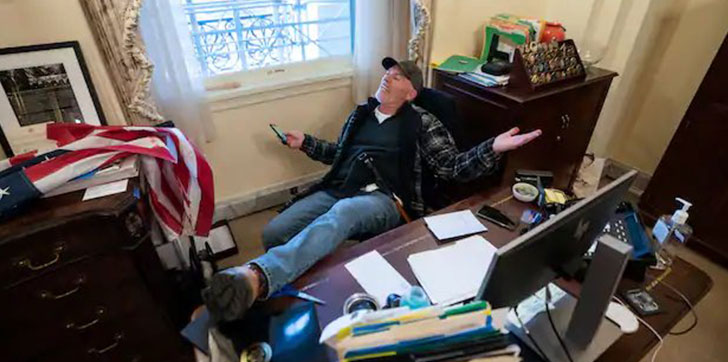 WASHINGTON.- El fanático de Donald Trump que se coló en el despacho de Nancy Pelosi en el Capitolio y se sentó en su silla o ha sido detenido 48 horas después del asalto.