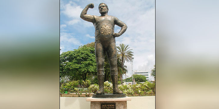 La Alcaldía del Distrito Nacional develizó una estatua en honor al destacado luchador profesional, Rafael Antonio Sánchez, “Jack Veneno” en el Parque Eugenio María de Hostos, mediante la resolución 36 del 21 de septiembre del 2018 emitida por el Concejo de Regidores.