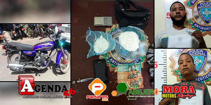 A éstos les fueron ocupados cuatro porciones de Marihuana con un peso de 195.9 gramos, 59 porciones de Cocaína con un peso de 236.2 gramos, además de un puñal, una balanza, dos celulares, un bulto tipo «maricona» de color negro, una motocicleta marca Z3000, modelo CG de color Azul y la suma de RD$700.00 pesos en efectivo.