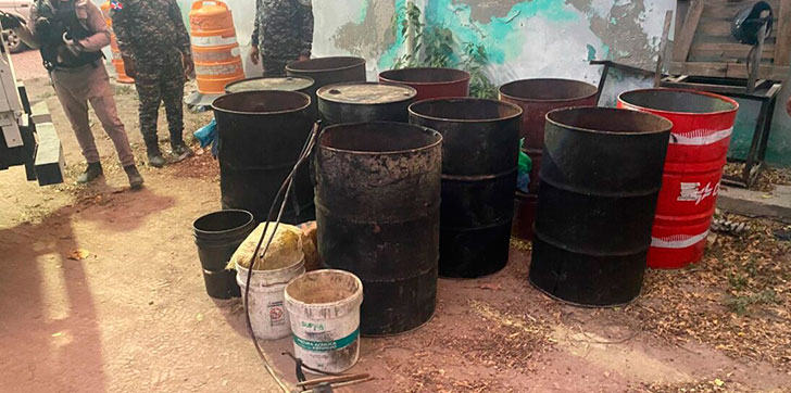 Diez tanques de fermentación de clerén incautados en operativo policial en Barahona