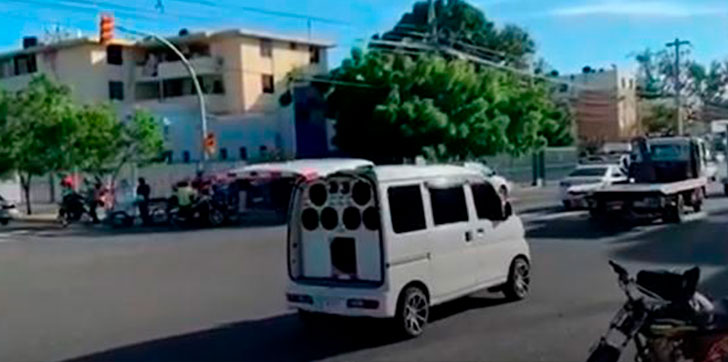 Los vehículos cruzaron la intersección de las avenidas Independencia y Winston Churchill, en dirección oeste este tocando el referido merengue mismo que se hizo tendencia en durante la pasada campaña electoral.