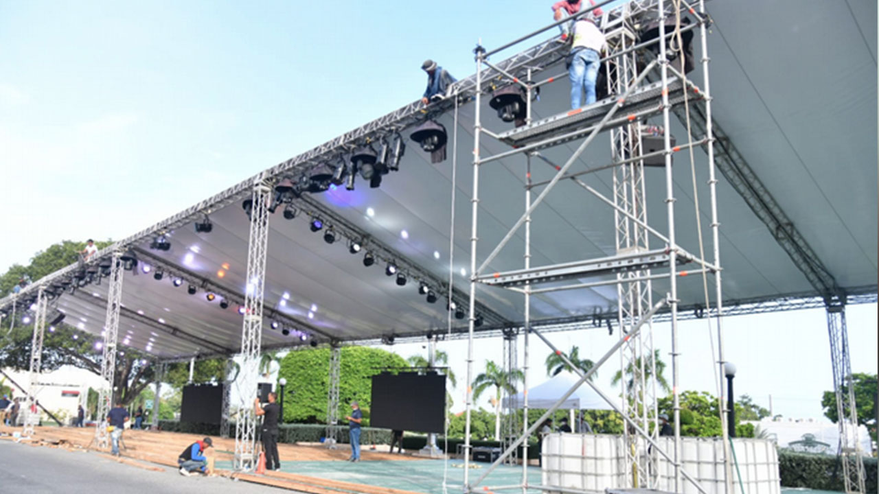 En la parte frontal de la sede de Gobierno, un equipo de logística trabajó durante todo el día de ayer en el ensamblaje de la tarima desde donde hablará el jefe de Estado.