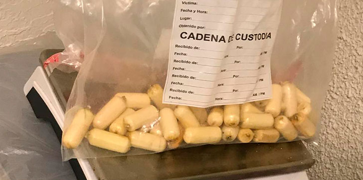 El informe estableció que el extranjero Todorov Svetoslav pretendía volar con destino a Bruselas, Bélgica, y fue detenido en el puesto de migración de la terminal Alfa y se le realizó una radiografía, arrojando resultado positivo de cuerpos extraños, en su estómago e intestinos.