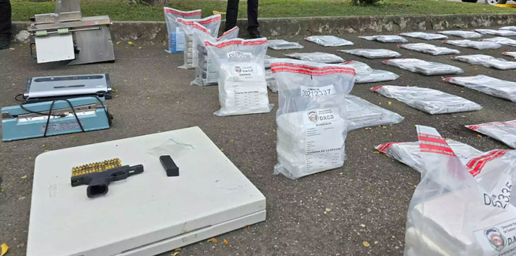 Durante el operativo, también fueron ocupados 4,000 pesos en efectivo, tres teléfonos celulares, dos sierras industriales, dos estuches para pistola Glock, seis máquinas de sellado, ocho cajas de pegamento, dos cajas de plástico para sellado al vacío y 12 balanzas. Igualmente, se incautaron una prensa hidráulica, una aspiradora, una mascarilla, un radio de comunicación y varios documentos.