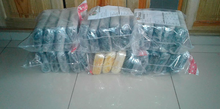 Tras la revisión a uno de los contenedores que iba cargado de rollos de cartón, se encontraron dos bultos conteniendo en su interior los paquetes de la sustancia, que tuvieron un peso de 28.20 kilogramos de cocaína, según el análisis del Instituto Nacional de Ciencias Forenses (INACIF).
