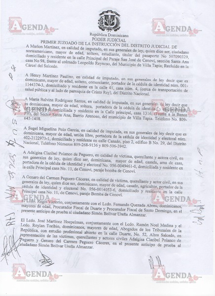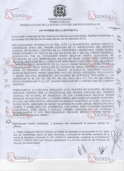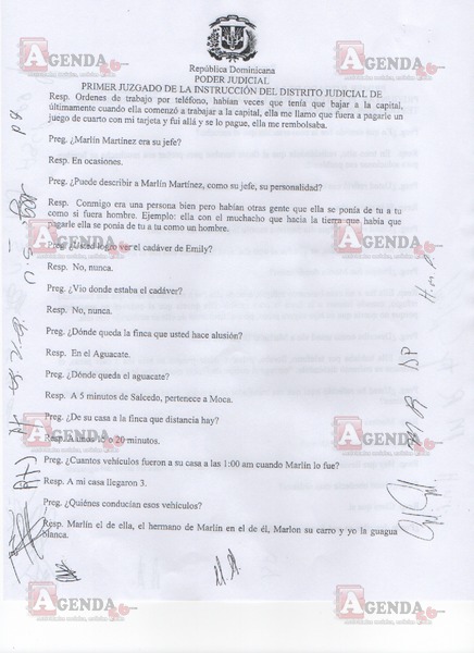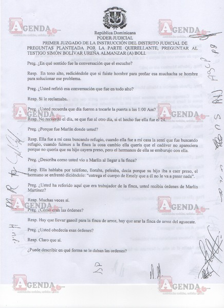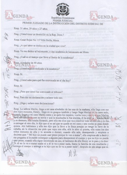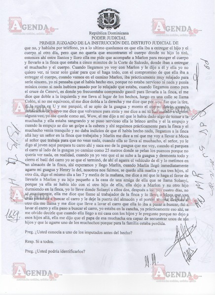 A continuación, en exclusiva le presentamos las imágenes de este interrogatorio en el que Ureña aclaró el destino de los cien mil pesos que se le dio para que aparentemente encubriera los restos de la menor, la participación de los demás imputados (Henry Martínez, María Balbina Rodríguez y Sugel Miguelina Polo) en este hecho que se registró el 23 de agosto del año pasado y de los vídeos captados por la cámara de seguridad de la finca a donde fue trasladado el cuerpo de Peguero Polanco.