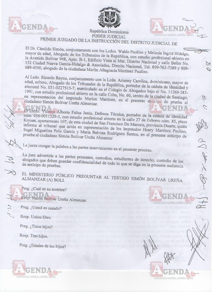 Este portal Web tuvo acceso a las declaraciones emitidas ayer por Simón Bolívar Ureña, alias «El Boli», durante el Anticipo de Pruebas con relación al presunto asesinato de Emely Peguero Polanco.