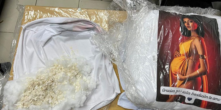 AGENDA56, SANTO DOMINGO.- Agentes de la Dirección Nacional de Control de Drogas (DNCD) y miembros del Ministerio Público descubrieron dos cojines rellenos de microfibras de cocaína, cortadas en forma cuadricular, durante labores de inspección realizadas en una compañía de envíos internacionales, en el Distrito Nacional.