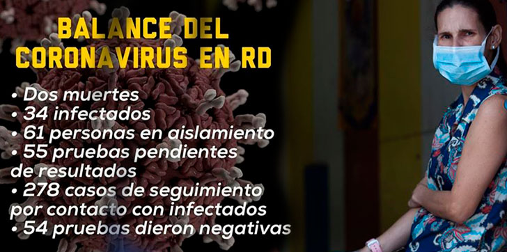 Dos muertos y 34 casos de Coronavirus en RD