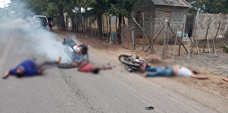 De acuerdo a datos extraoficiales, el hecho ocurrió momentos en que se realizaba una carrera clandestina cuando llegó una patrulla policial, por lo que los participantes de dicha carrera salieron huyendo del lugar,  impactando la motocicleta en la que se desplazan Adonis (muerto) y Julian Arismendy con la motocicleta en la que viajaba la pareja compuesta por el maestro constructor Robert García (muerto) y Rossy López.
