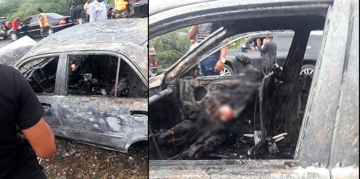 AGENDA56, AZUA.- Dos personas quedan totalmente calcinadas tras impactar su vehículo en el cual viajaban con otro y este explotara, en un hecho ocurrido ayer entre la carretera de Azua y el Cruce de Ocoa.