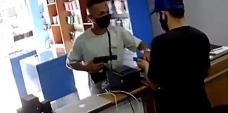 Medios internacionales resaltan que las cámaras de seguridad muestran como el asaltante se hace pasar por cliente y cuando el establecimiento queda vacío, saca un arma para robar al propietario.