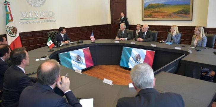 Kelly y Tillerson llegaron el miércoles a la capital mexicana en una esperada visita que comenzó con una cena con Videgaray, y los secretarios de la Defensa Nacional, general Salvador Cienfuegos, y de Marina, almirante Vidal Francisco Soberón, además del fiscal general mexicano, Raúl Cervantes.